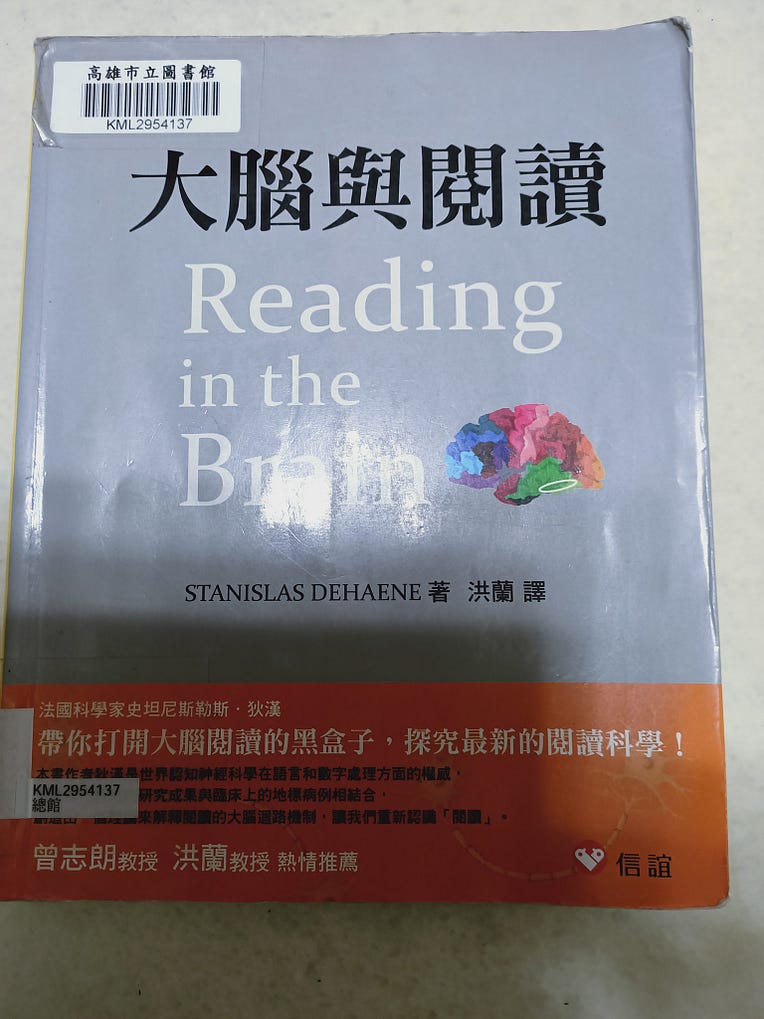 利用同樣方式腦部認知實驗可以在其他靈長類中,確認人類閱讀神經作用方式,忽略細節,建構閱讀的方式,圖畫>語音>搆字,這也是中文與其他系統稍有不同之處,看似圖畫文字多,部分也是有大量拼音字就是形聲字。符合人類閱讀習慣,視覺為主,但也有聽覺輔助。中後段主要談一些器官障礙,孩子書讀不好不是他懶或笨,而是大腦有問題,家長老師也就可以用書中建議的方式幫助孩子克服問題。人類對於圖像的左右對稱不敏感。